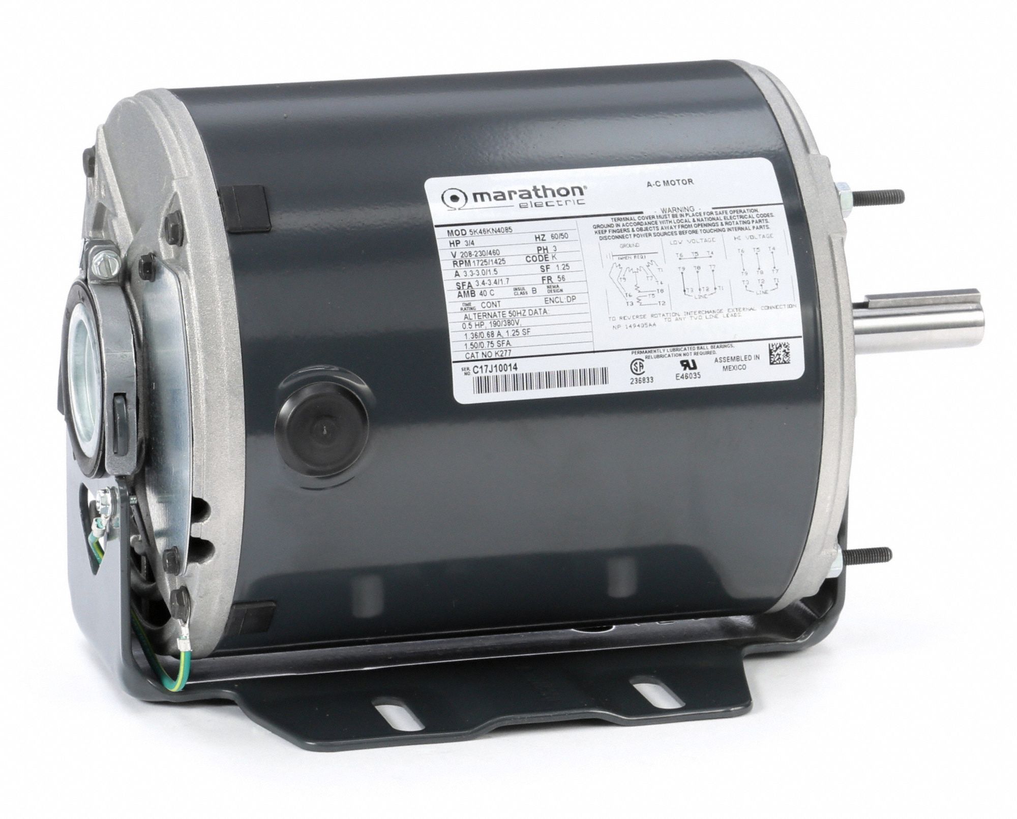 Marathon Motors Belt Drive Motor 1 Speed Open Dripproof Cradle Base Mount 3 4 Hp 56 Frame 490t70 5k46kn4085 Grainger
